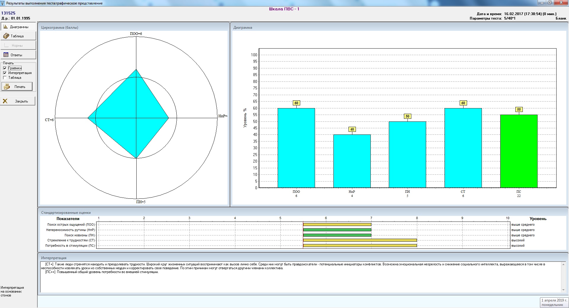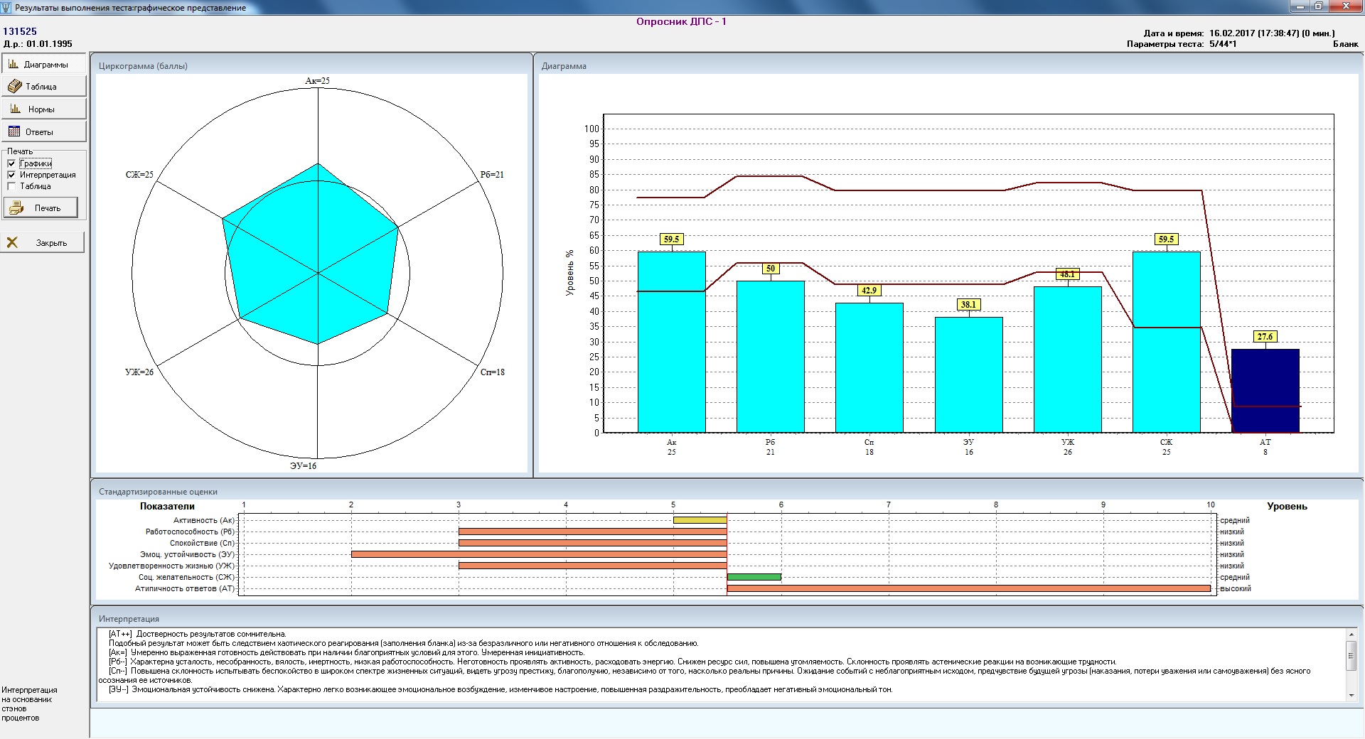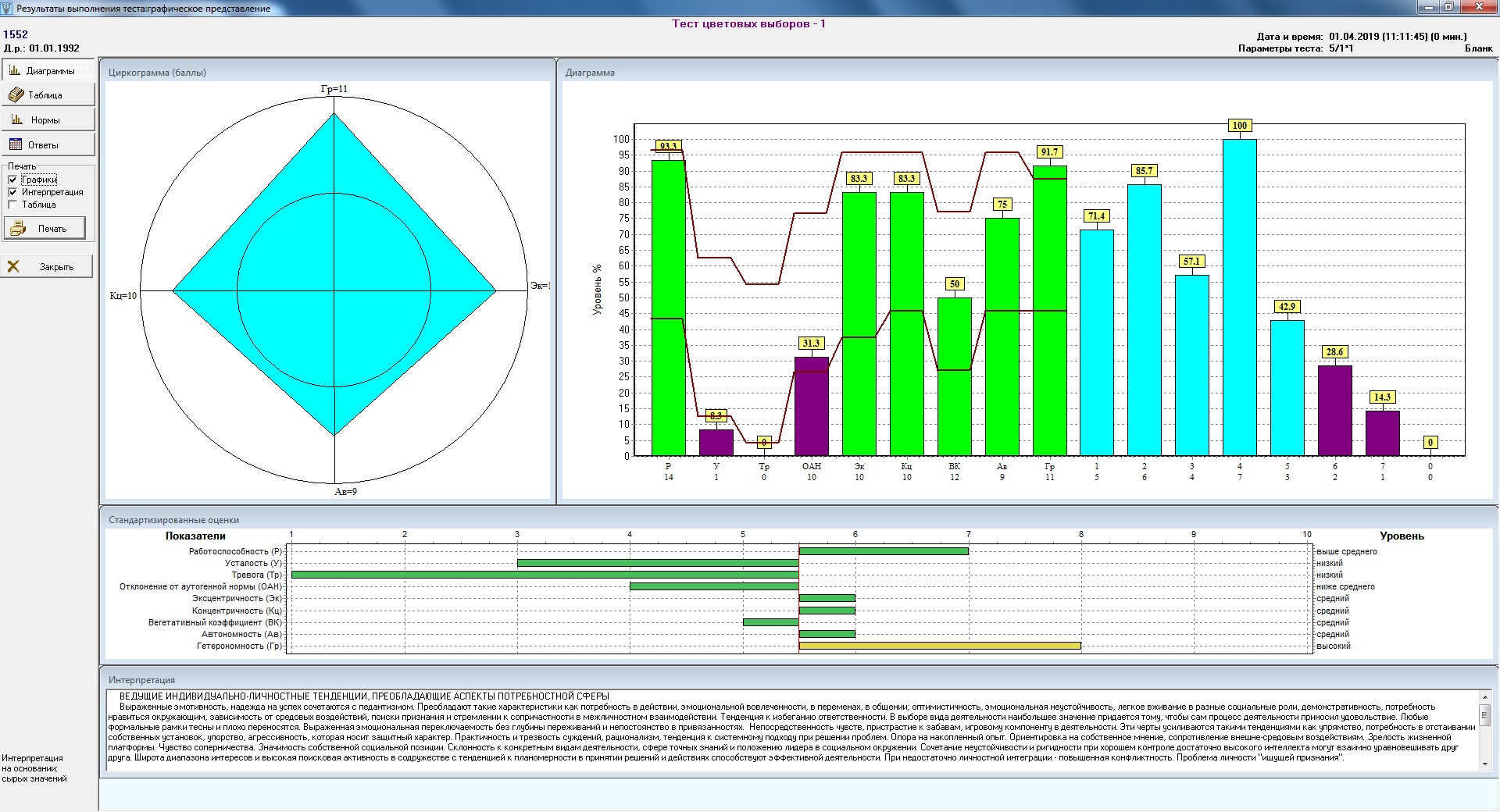 Следует отметить, что различные аспекты психических состояний могут быть оценены и некоторыми другими тестовыми заданиями, в частности, входящими в блок «Деятельностных тестов» (скорость сенсомоторных реакций, характеристики внимания и т.п.).