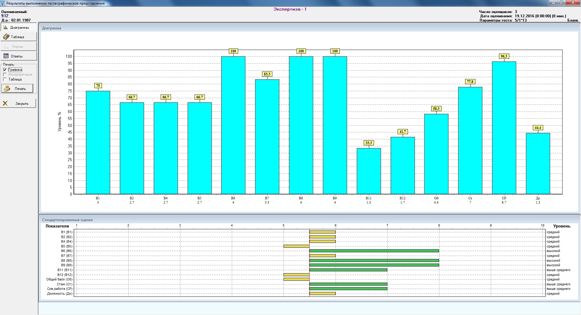 Блок «Экспертиза» включает в себя методики групповой оценки личности (ГОЛ), служащие инструментами измерения компетенций, поведенческих характеристик персонала организаций, эффективности выполнения обязанностей, в особенности в случаях затруднительности применения объективных KPI (ключевых показателей эффективности). Данные методики применяются в ходе проведения аттестаций, в работе ассессмент-центров, а также в научных целях для эмпирической валидизации психодиагностического инструментария.