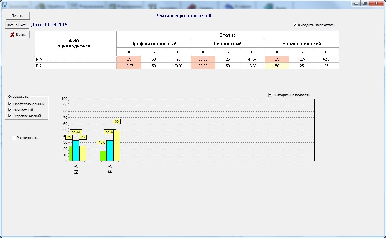 Имеются также формы опроса подчинённых о руководителях.