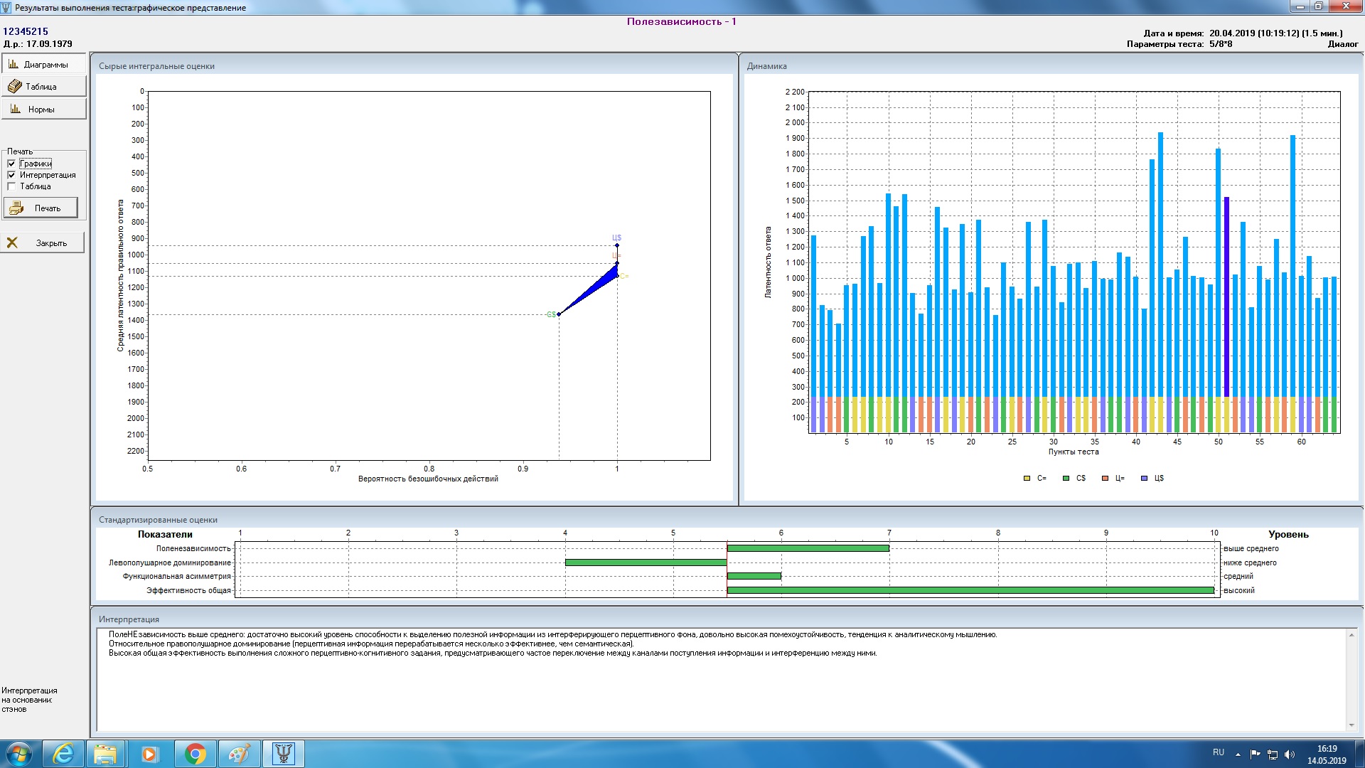 • отдельного испытуемого по тестовой батарее;