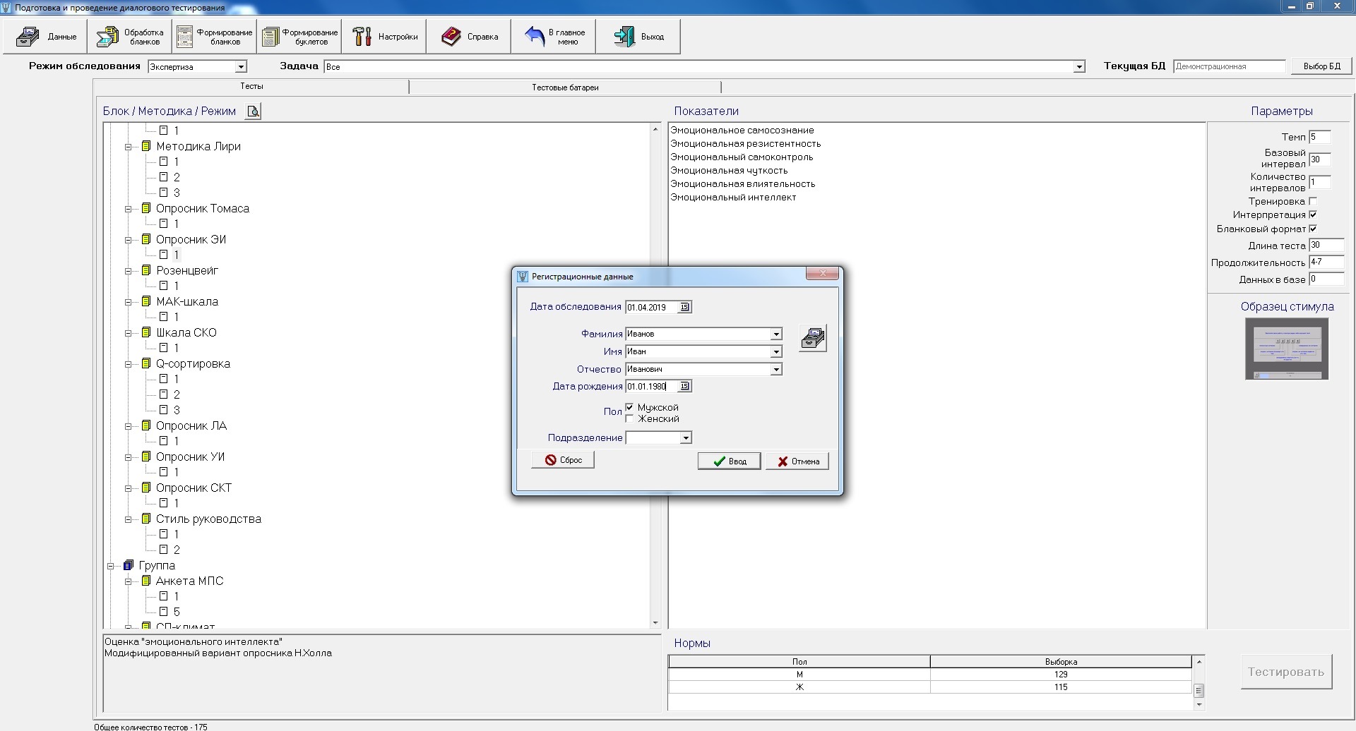 Базовая версия УПС «Мультипсихометр»® содержит следующие методические блоки: