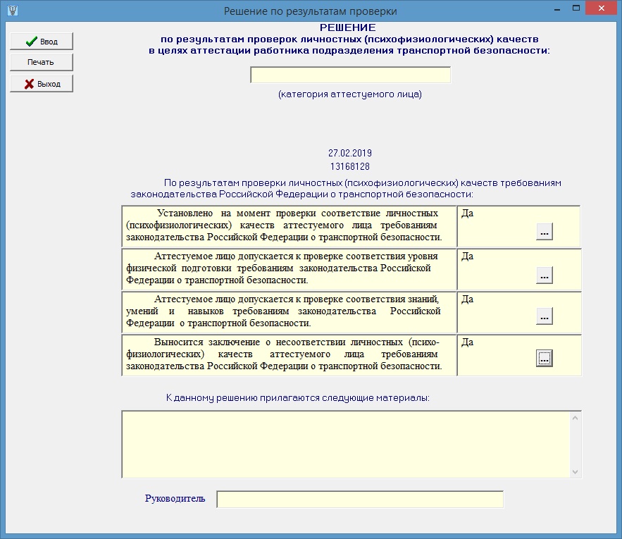 Применяется в практической работе психологов сил обеспечения транспортной безопасности с целью автоматизации процедуры вынесения оценки личностных (психофизиологических) качеств отдельных категорий сил обеспечения транспортной безопасности (далее — «ОТБ»):